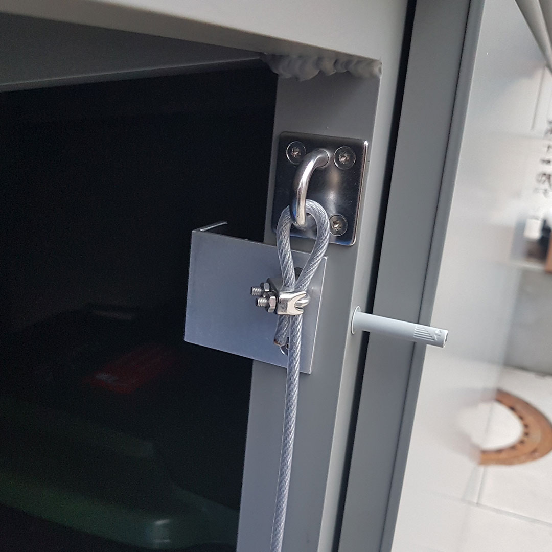 Müllanlage aus pulverbeschichtetem Aluminium mit auskippbaren Tonnen.